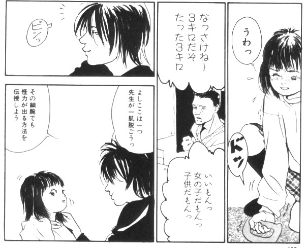 「美女とのけもの」でも照れ隠しなのか少年の決め台詞が本宮ひろ志風。