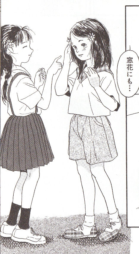 「お花ばたけ王朝紀」は言わずと知れた町田ひらくの代表作。幼少時に孤児となった窓花と、母子家庭で散々な境遇に遭っている千秋の物語。下に掲げたのは町田作品の中でも特にお気に入りのシーン。2人の笑顔の綺麗なこと!